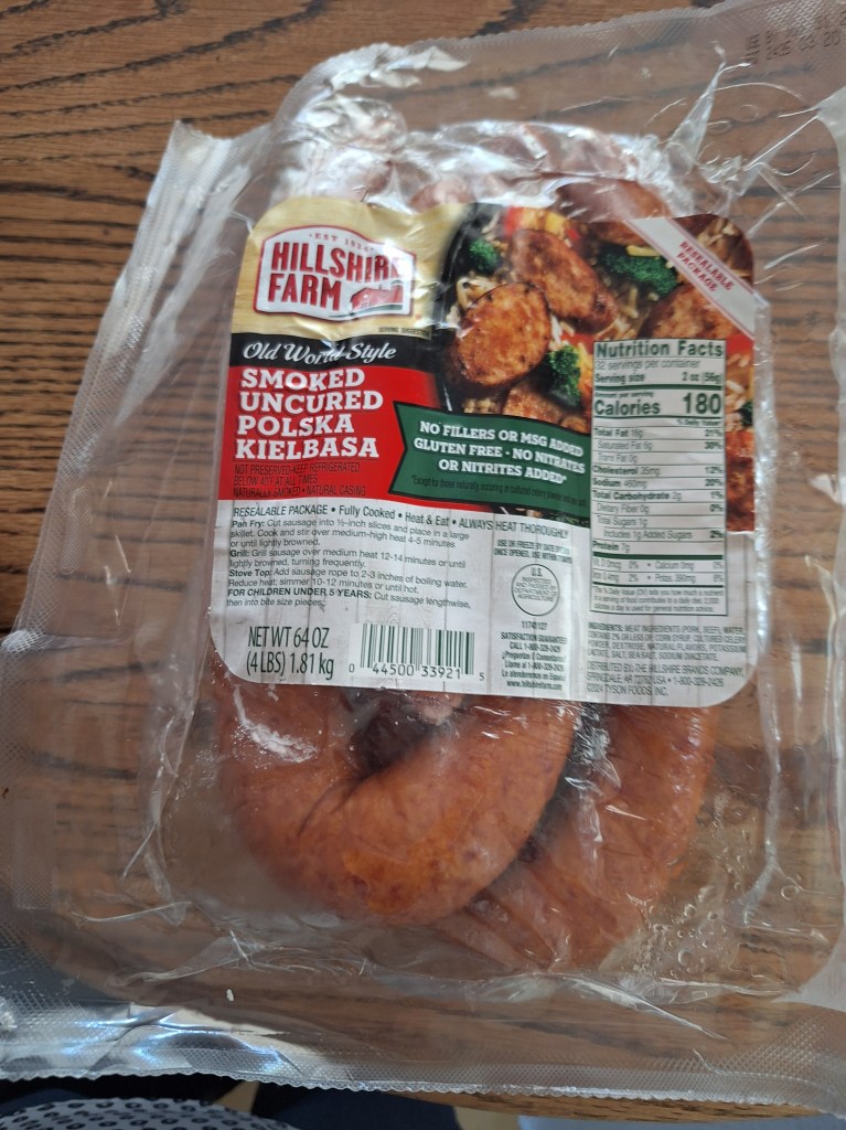 - 2 sausage links, chopped (that’s one long sausage cut it in half= makes 2)